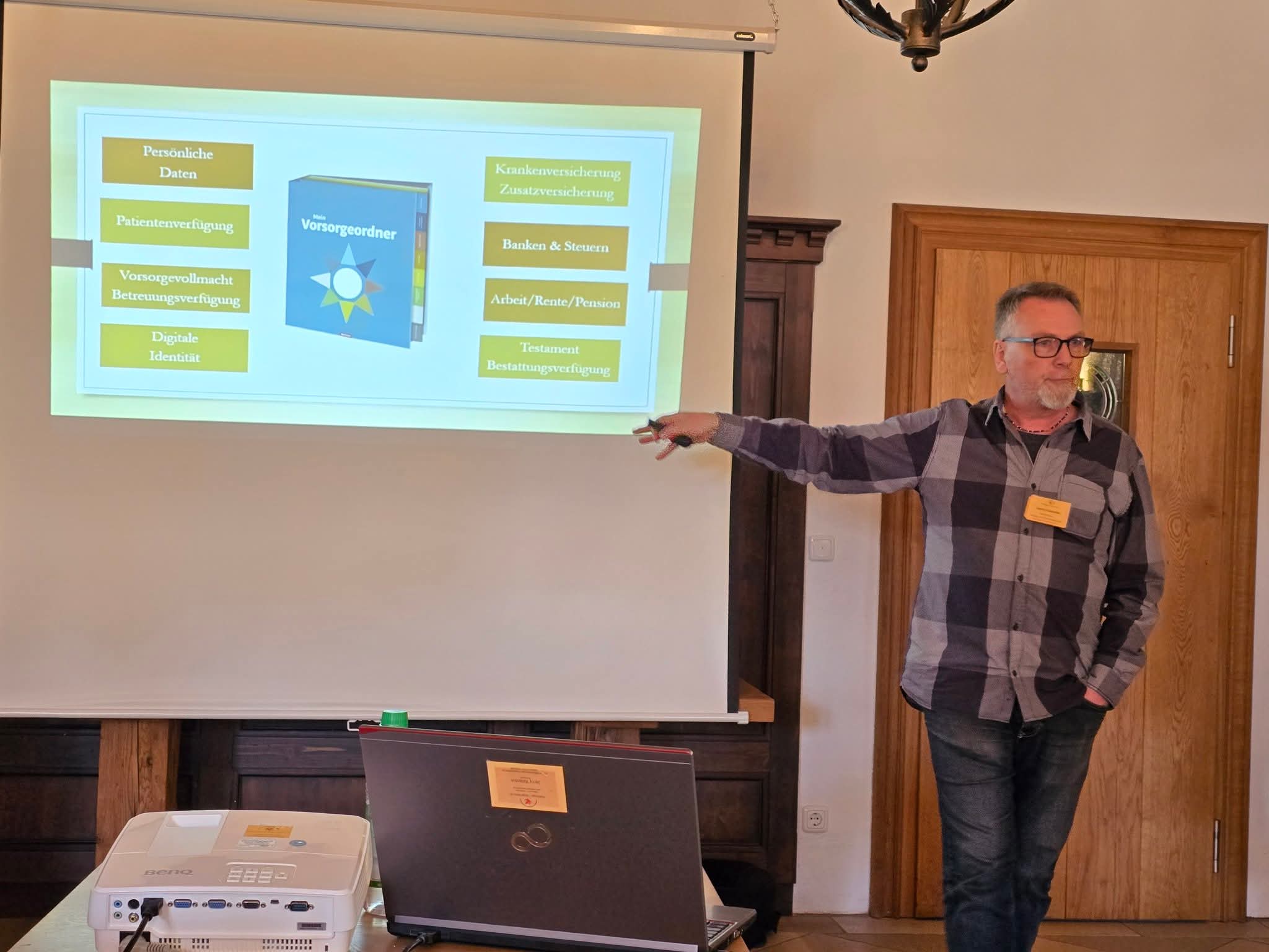 Darüber hinaus erklärte er die Funktion einer Vorsorgevollmacht, mit der festgelegt wird, wer im Ernstfall rechtlich für eine Person handeln darf – von der Gesundheits- bis zur Vermögenssorge. Zum Abschluss stellte er noch den palliativen Krisenplan vor, der bei unheilbaren Erkrankungen dazu beitragen soll, Schmerzen zu lindern und die Lebensqualität in der letzten Lebensphase zu verbessern. Im Anschluss beantwortete er noch Fragen zum Thema.